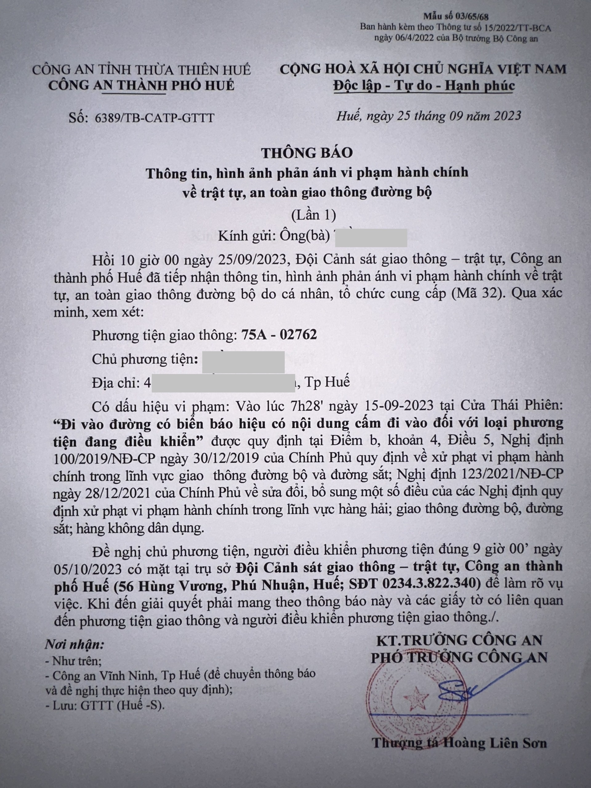 Công an thành phố cập nhật Quyết định xử phạt. (Đính kèm QĐ)