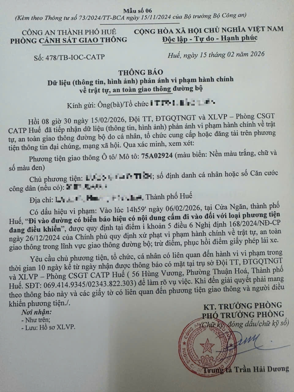 Vấn đề quý Ông/Bà phản ánh, Phòng Cảnh sát giao thông – Công an thành phố Huế đã kiểm tra và xin thông báo kết quả như sau: