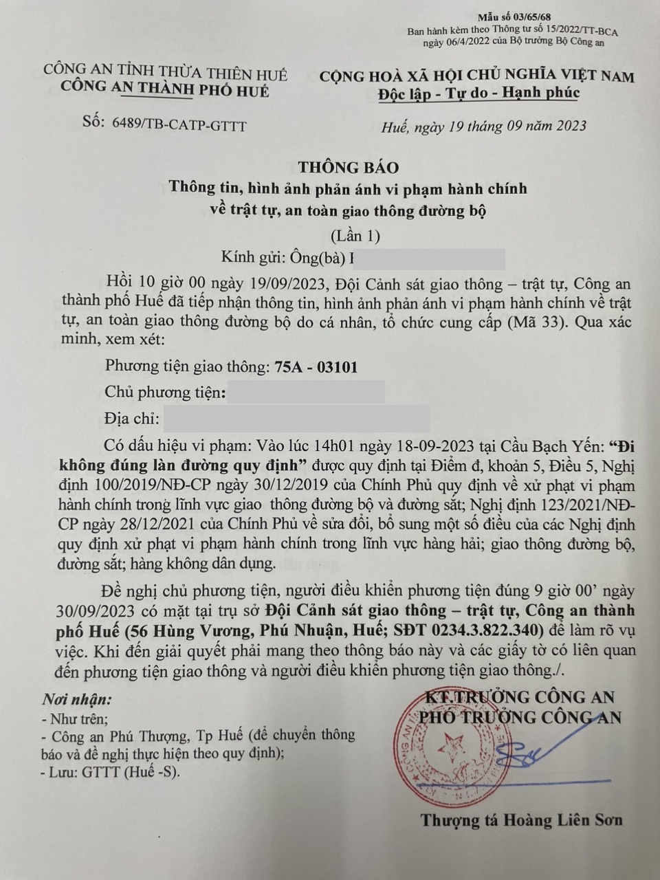 Công an thành phố cập nhật kết quả: Qua xác minh làm việc với chủ phương tiện vi phạm lỗi: Không chấp hành hiệu lệnh, chỉ dẫn của vạch kẻ đường, quy định tại điểm a, khoản 1, điều 5 Nghị định 100/2019/NĐ-CP được sửa đổi, bổ sung tại Nghị định 123/NĐ-CP ngày 28/12/2021. Ra Quyết định xử phạt 350.000đ. (Đính kèm Quyết định)