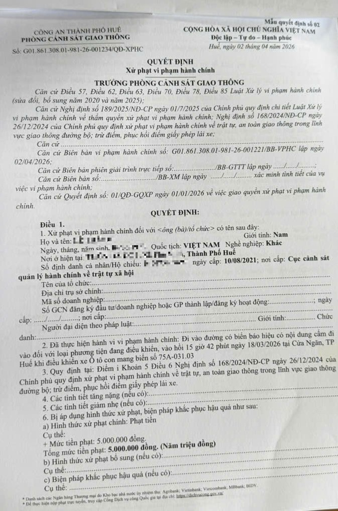 Phòng Cảnh sát giao thông cập nhật Quyết định xử phạt (Đính kèm QĐ).