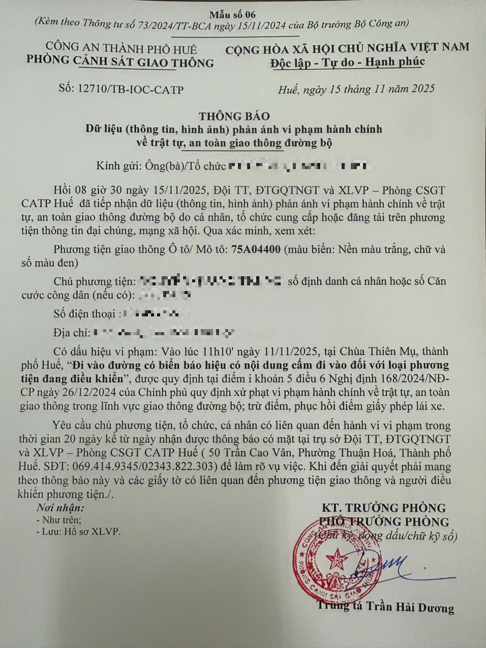Vấn đề quý Ông/Bà phản ánh, Phòng Cảnh sát giao thông – Công an thành phố Huế đã kiểm tra và xin thông báo kết quả như sau: