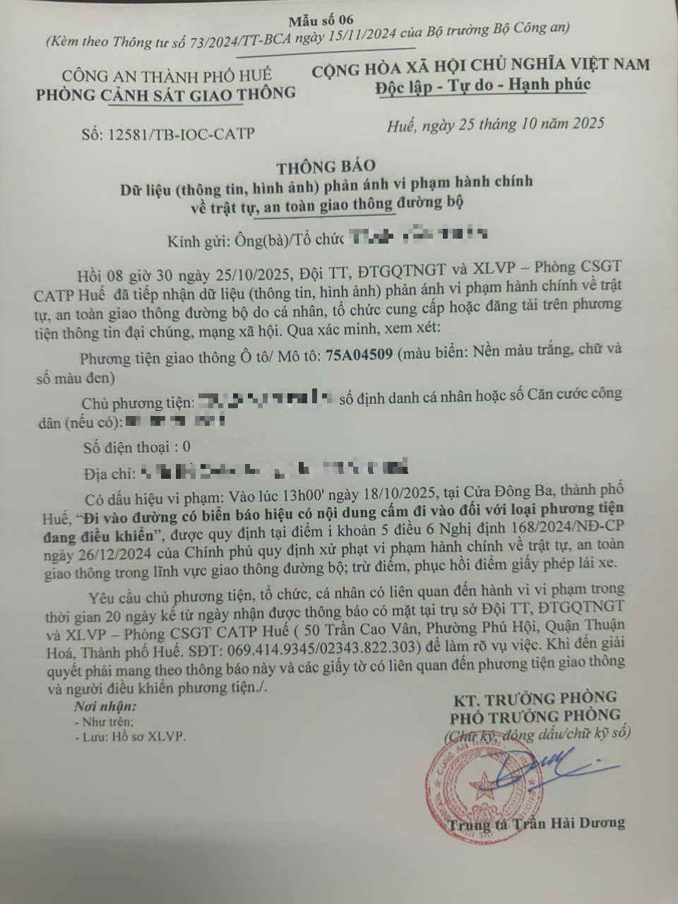 Vấn đề quý Ông/Bà phản ánh, Phòng Cảnh sát giao thông – Công an thành phố Huế đã kiểm tra và xin thông báo kết quả như sau: