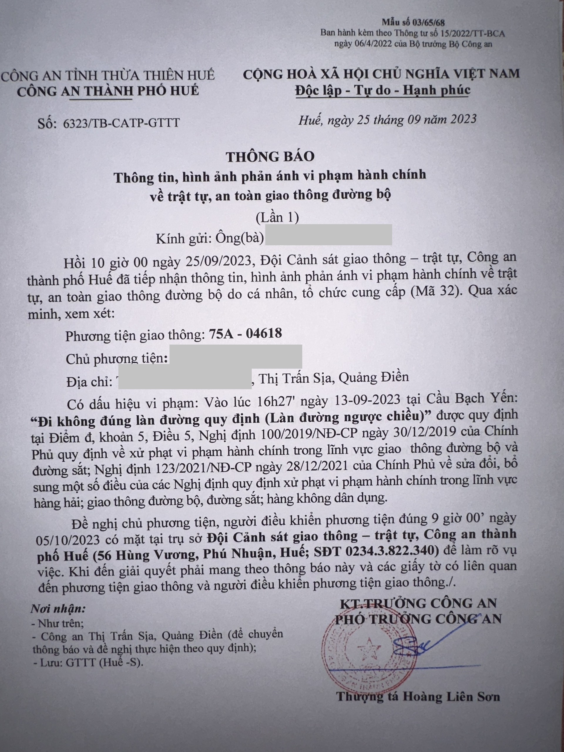 Vấn đề quý Ông/Bà phản ánh, Công an tỉnh đã chỉ đạo Công an thành phố Huế kiểm tra và xin thông báo kết quả như sau: