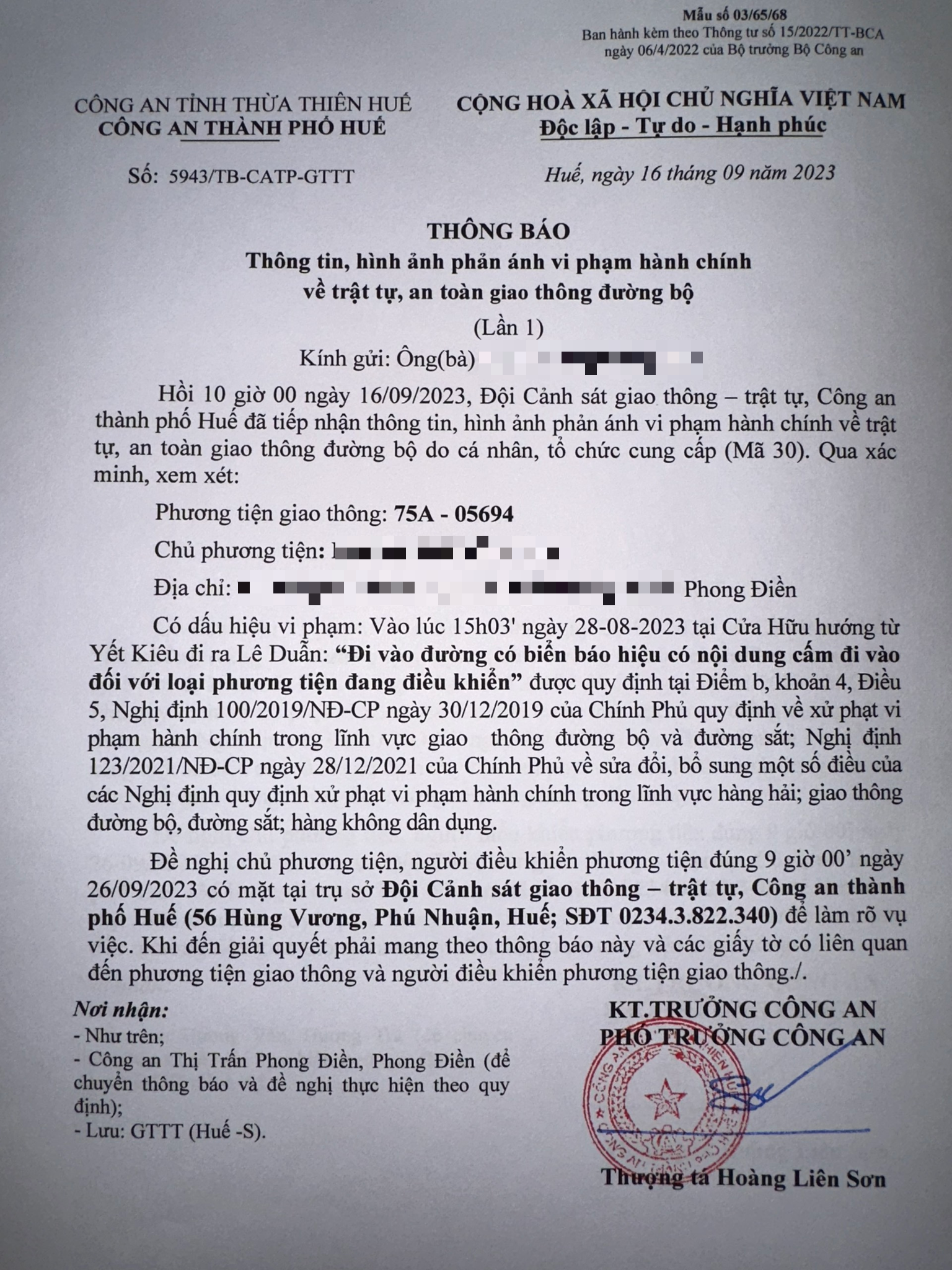 Công an thành phố cập nhật Quyết định xử phạt. (Đính kèm QĐ)