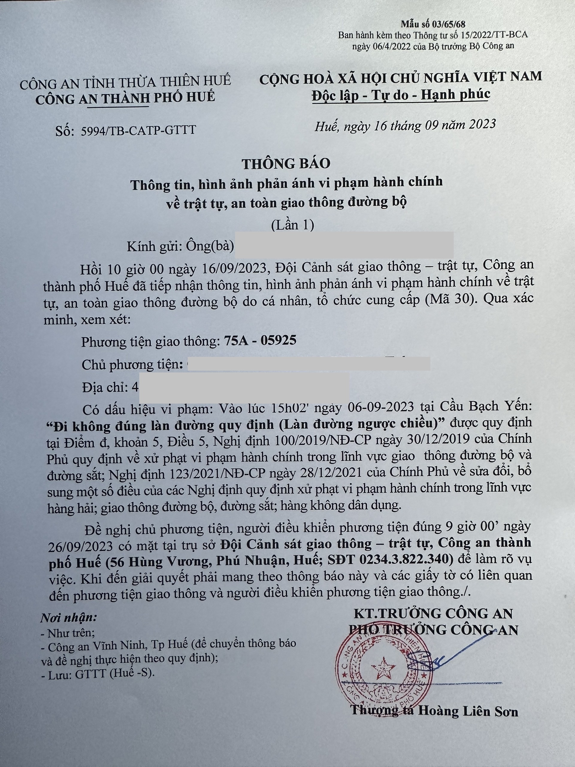 Công an thành phố cập nhật Quyết định xử phạt vi phạm hành chính của phương tiện. (Đính kèm Quyết định)