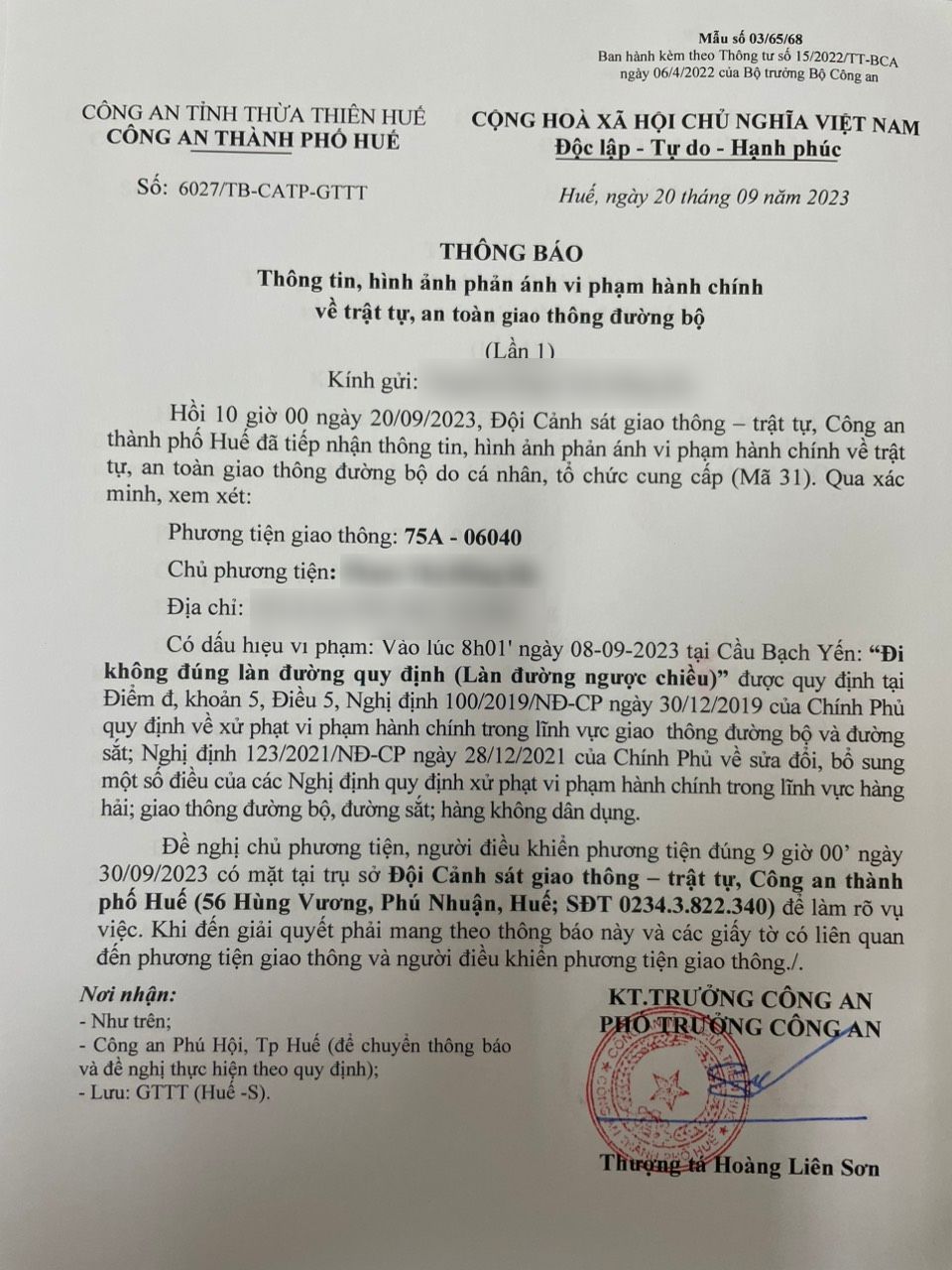 Vấn đề quý Ông/Bà phản ánh, Công an tỉnh đã chỉ đạo Công an thành phố Huế kiểm tra và xin thông báo kết quả như sau:
