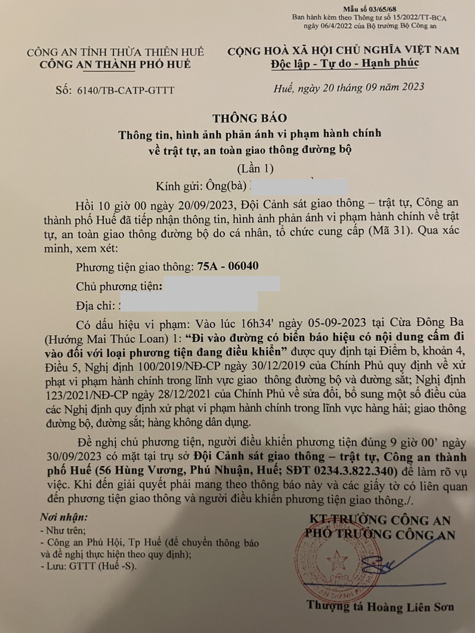 Vấn đề Ông/Bà phản ánh, Công an tỉnh đã chỉ đạo Công an thành phố Huế kiểm tra và xin thông báo kết quả như sau:
