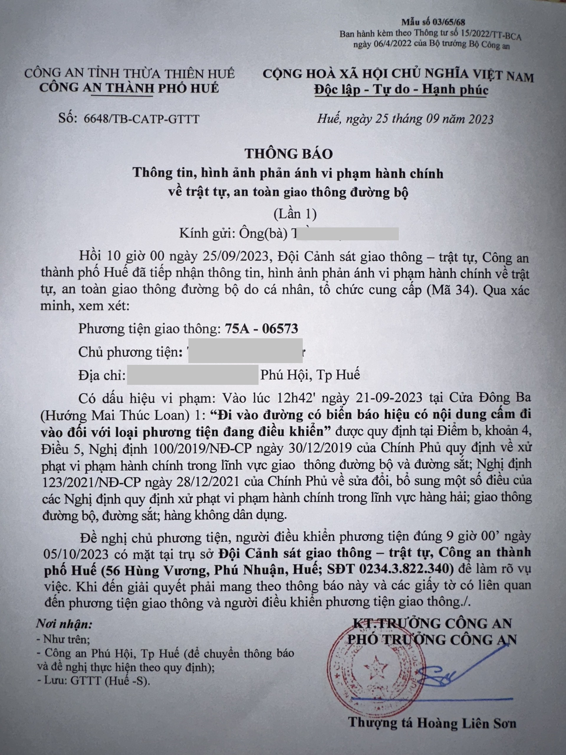 Vấn đề quý Ông/Bà phản ánh, Công an tỉnh đã chỉ đạo Công an thành phố Huế kiểm tra và xin thông báo kết quả như sau: