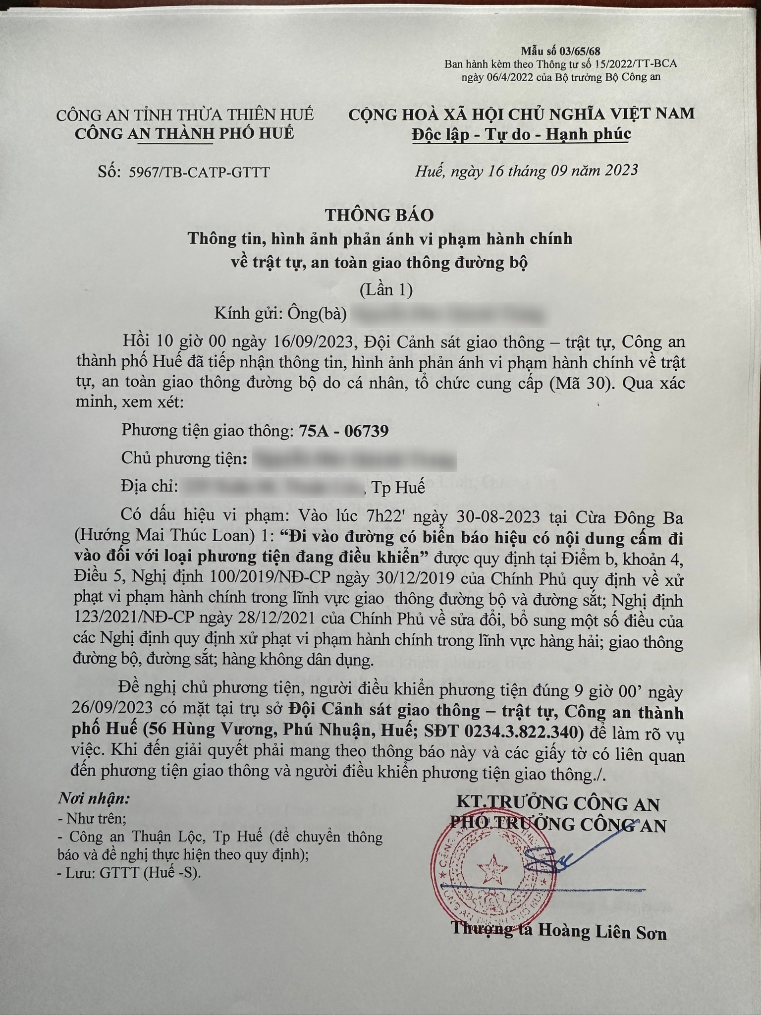 Công an thành phố cập nhật Quyết định xử phạt. (Đính kèm QĐ)