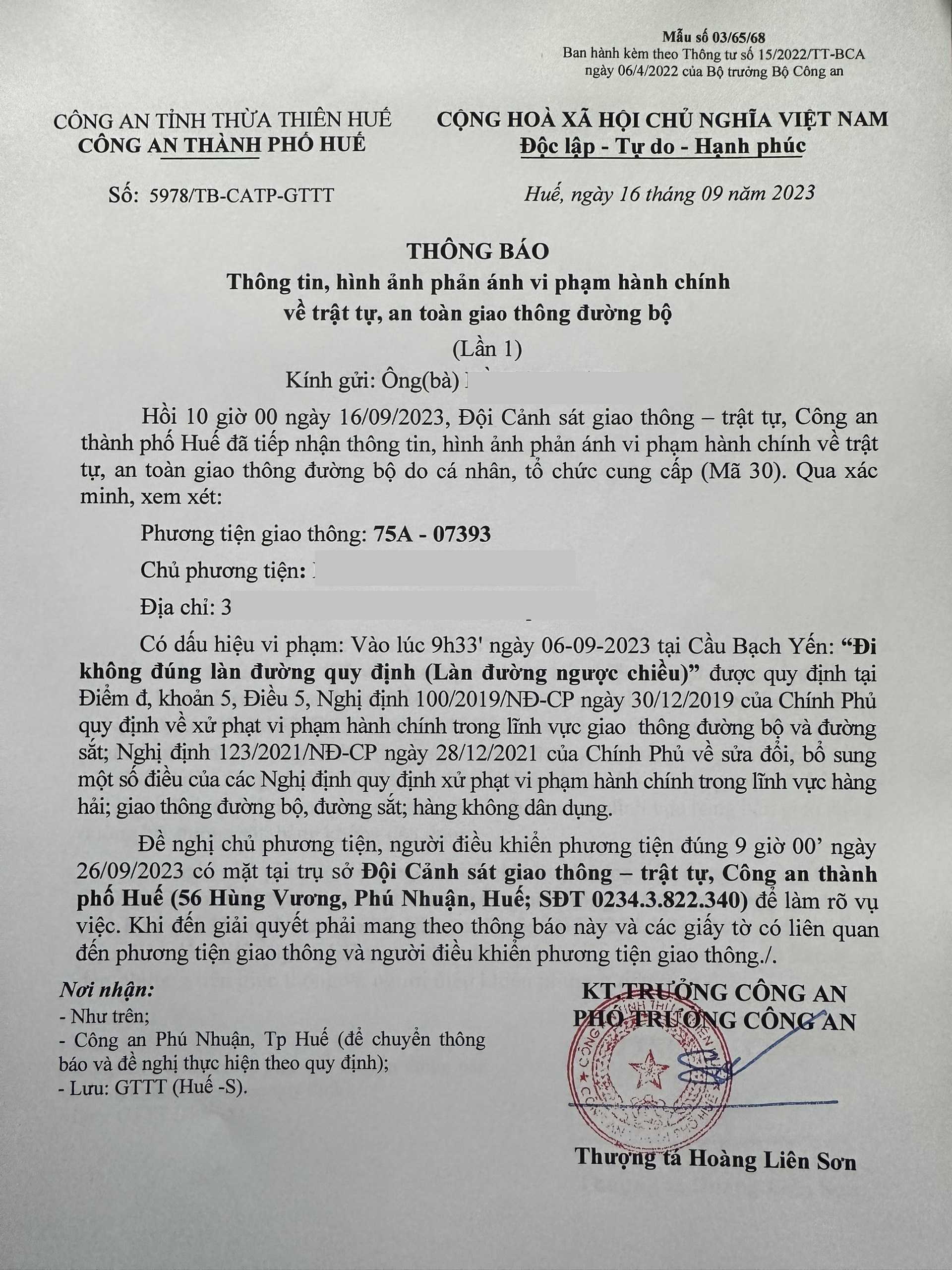 Công an thành phố cập nhật kết quả: Qua xác minh làm việc với chủ phương tiện vi phạm lỗi: Không chấp hành hiệu lệnh, chỉ dẫn của vạch kẻ đường, quy định tại điểm a, khoản 1, điều 5 Nghị định 100/2019/NĐ-CP được sửa đổi, bổ sung tại Nghị định 123/NĐ-CP ngày 28/12/2021. Ra Quyết định xử phạt 350.000đ. (Đính kèm Quyết định)