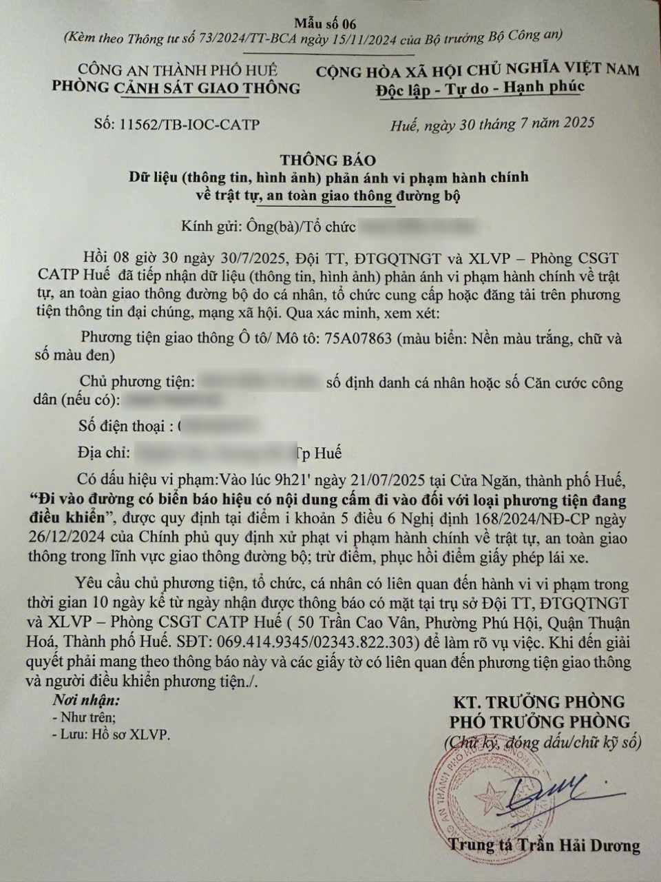 Vấn đề quý Ông/Bà phản ánh, Phòng Cảnh sát giao thông – Công an thành phố Huế đã kiểm tra và xin thông báo kết quả như sau: