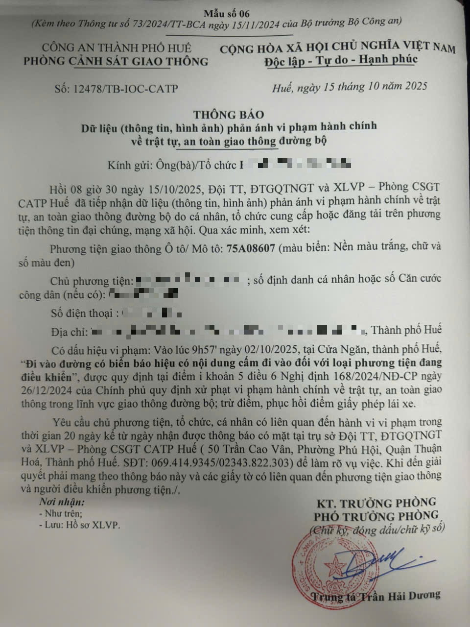 Vấn đề quý Ông/Bà phản ánh, Phòng Cảnh sát giao thông – Công an thành phố Huế đã kiểm tra và xin thông báo kết quả như sau: