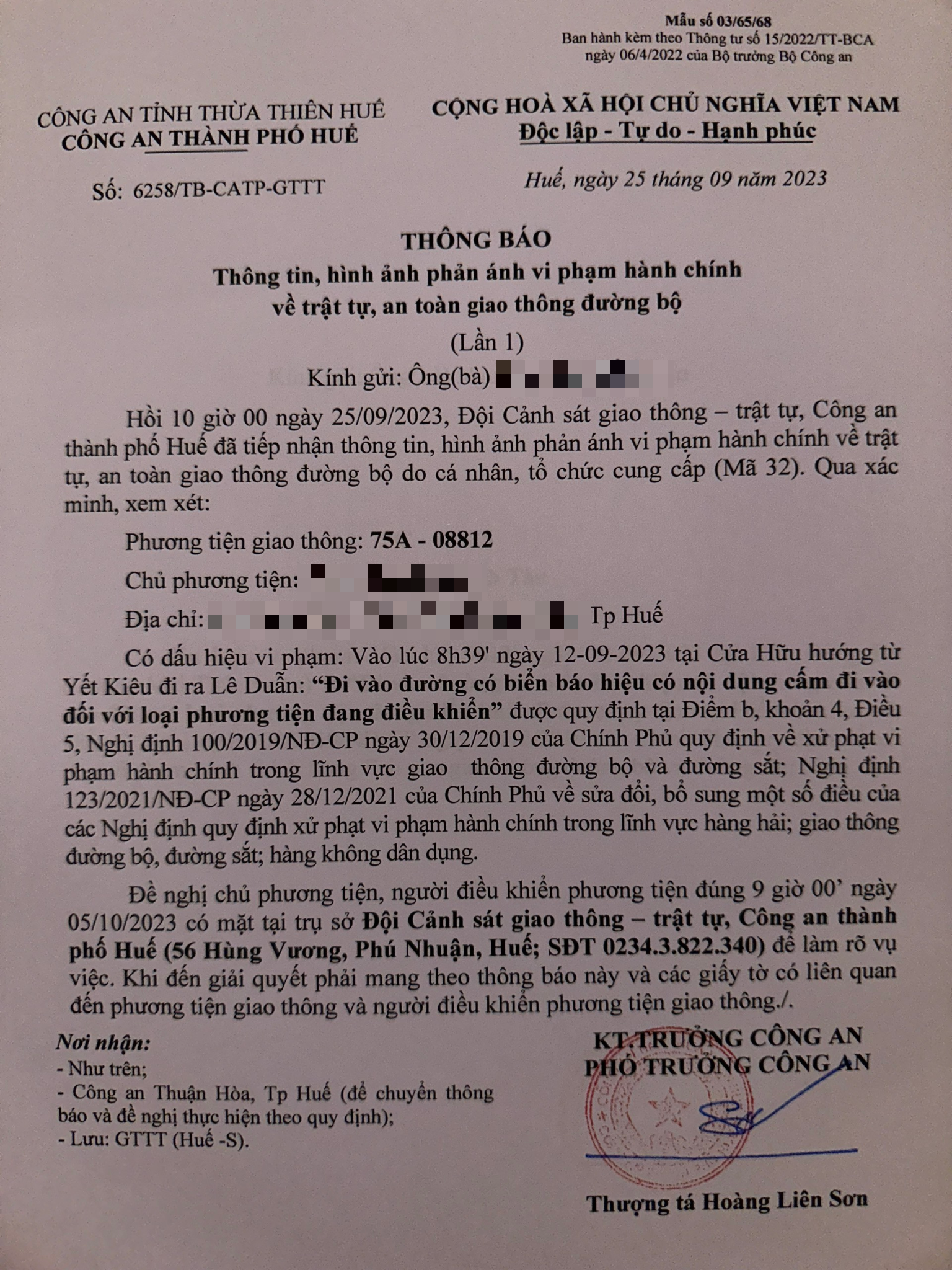 Công an thành phố cập nhật Quyết định xử phạt. (Đính kèm QĐ)