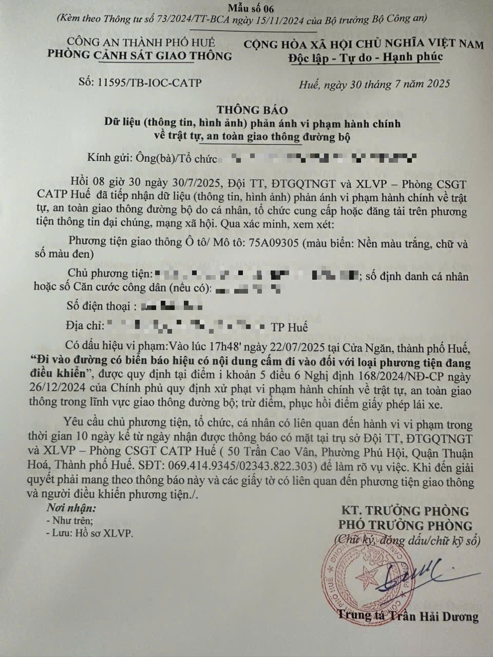 Vấn đề quý Ông/Bà phản ánh, Phòng Cảnh sát giao thông – Công an thành phố Huế đã kiểm tra và xin thông báo kết quả như sau: