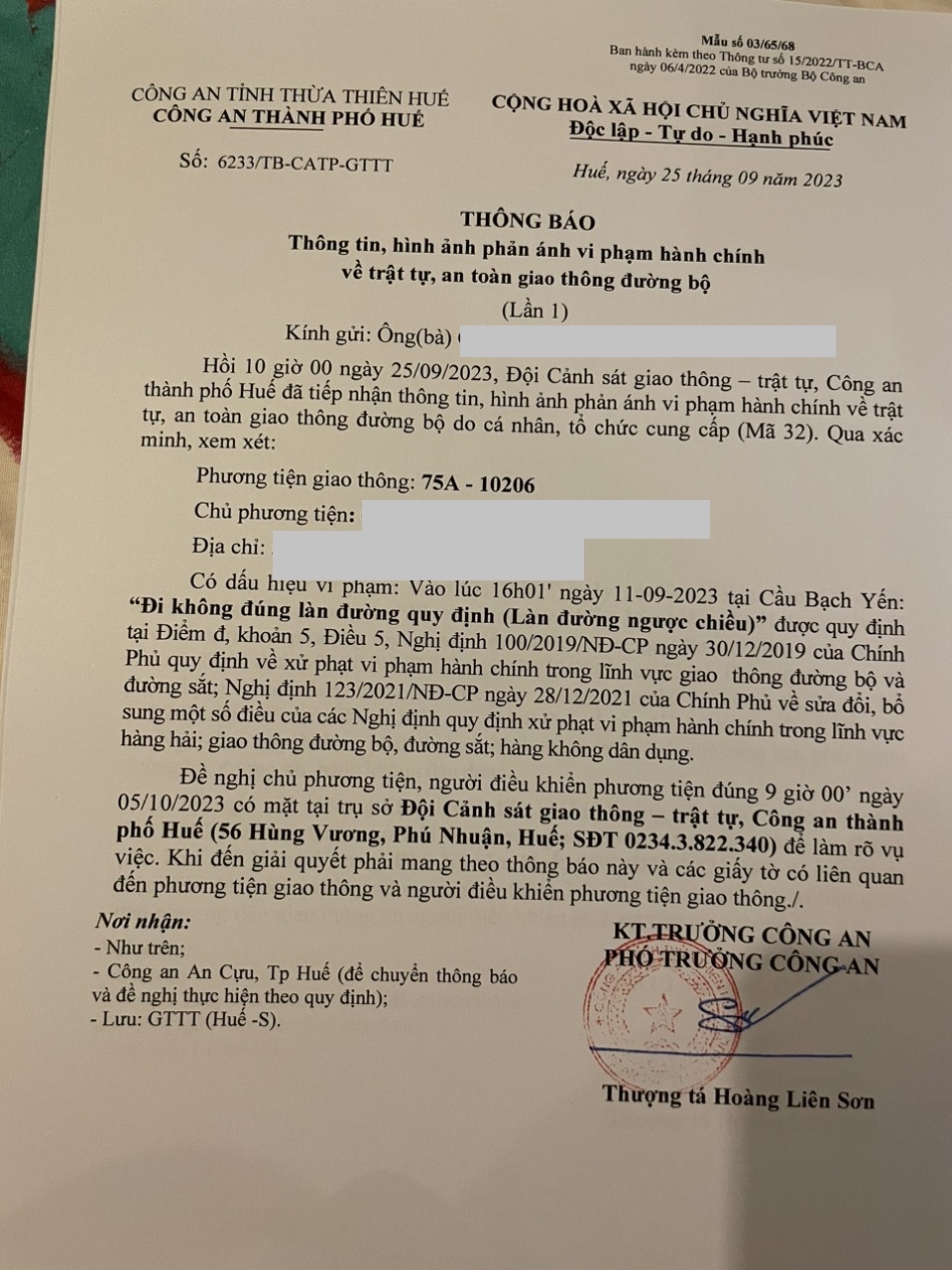 Công an thành phố cập nhật kết quả: Qua xác minh làm việc với chủ phương tiện vi phạm lỗi: Không chấp hành hiệu lệnh, chỉ dẫn của vạch kẻ đường, quy định tại điểm a, khoản 1, điều 5 Nghị định 100/2019/NĐ-CP được sửa đổi, bổ sung tại Nghị định 123/NĐ-CP ngày 28/12/2021. Ra Quyết định xử phạt 350.000đ. (Đính kèm Quyết định)