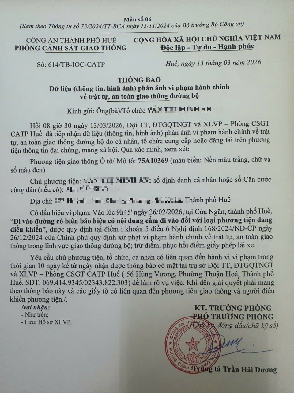 Vấn đề quý Ông/Bà phản ánh, Phòng Cảnh sát giao thông – Công an thành phố Huế đã kiểm tra và xin thông báo kết quả như sau: