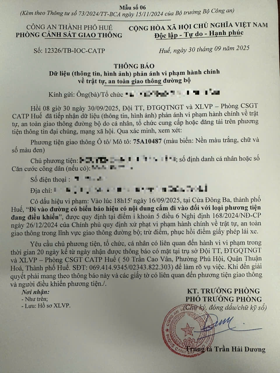 Vấn đề quý Ông/Bà phản ánh, Phòng Cảnh sát giao thông – Công an thành phố Huế đã kiểm tra và xin thông báo kết quả như sau: