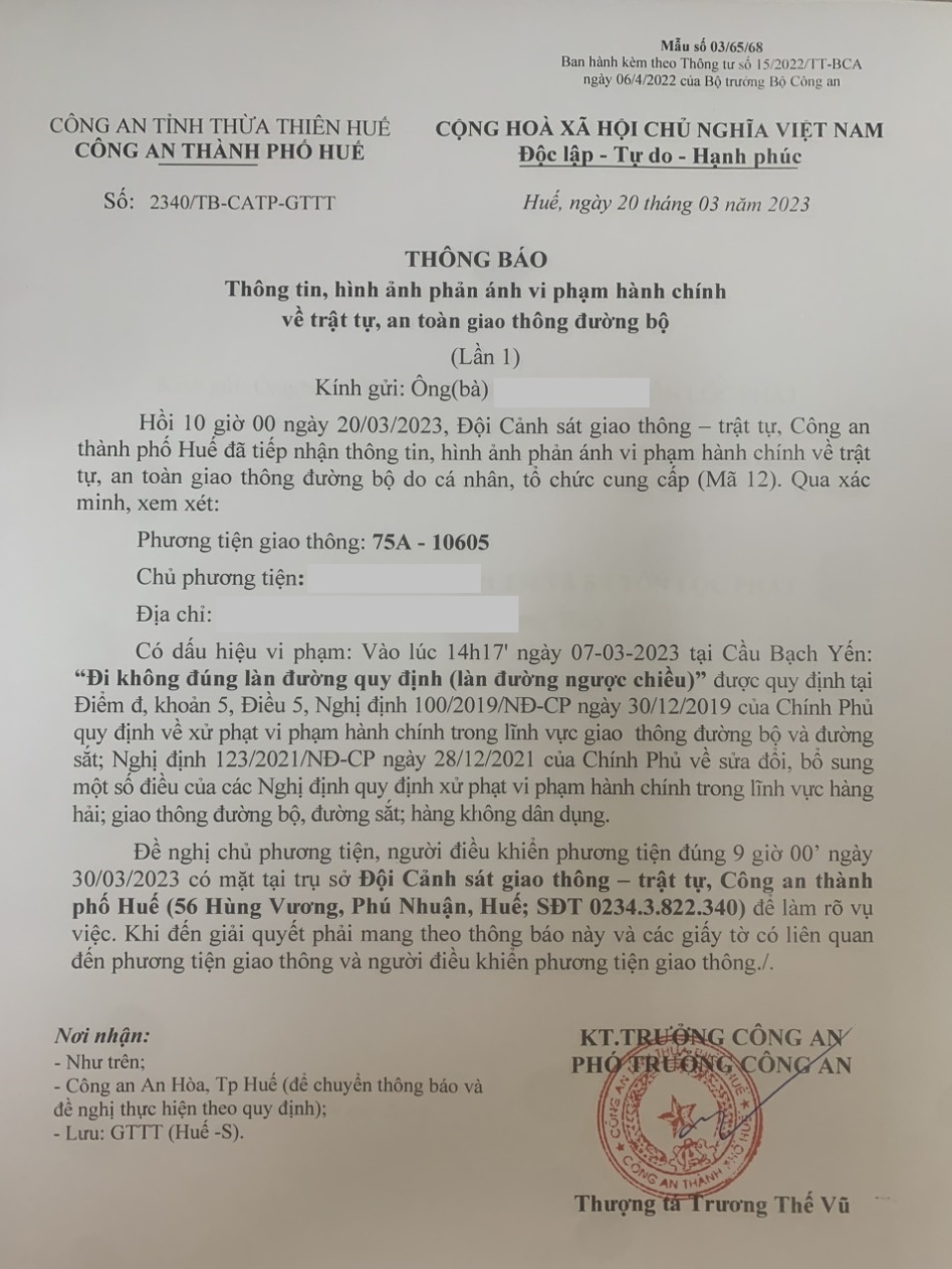 Vấn đề quý Ông/Bà phản ánh, Công an tỉnh đã chỉ đạo Công an thành phố Huế kiểm tra và xin thông báo kết quả xử lý như sau: