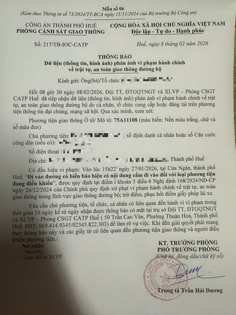 Vấn đề quý Ông/Bà phản ánh, Phòng Cảnh sát giao thông – Công an thành phố Huế đã kiểm tra và xin thông báo kết quả như sau: