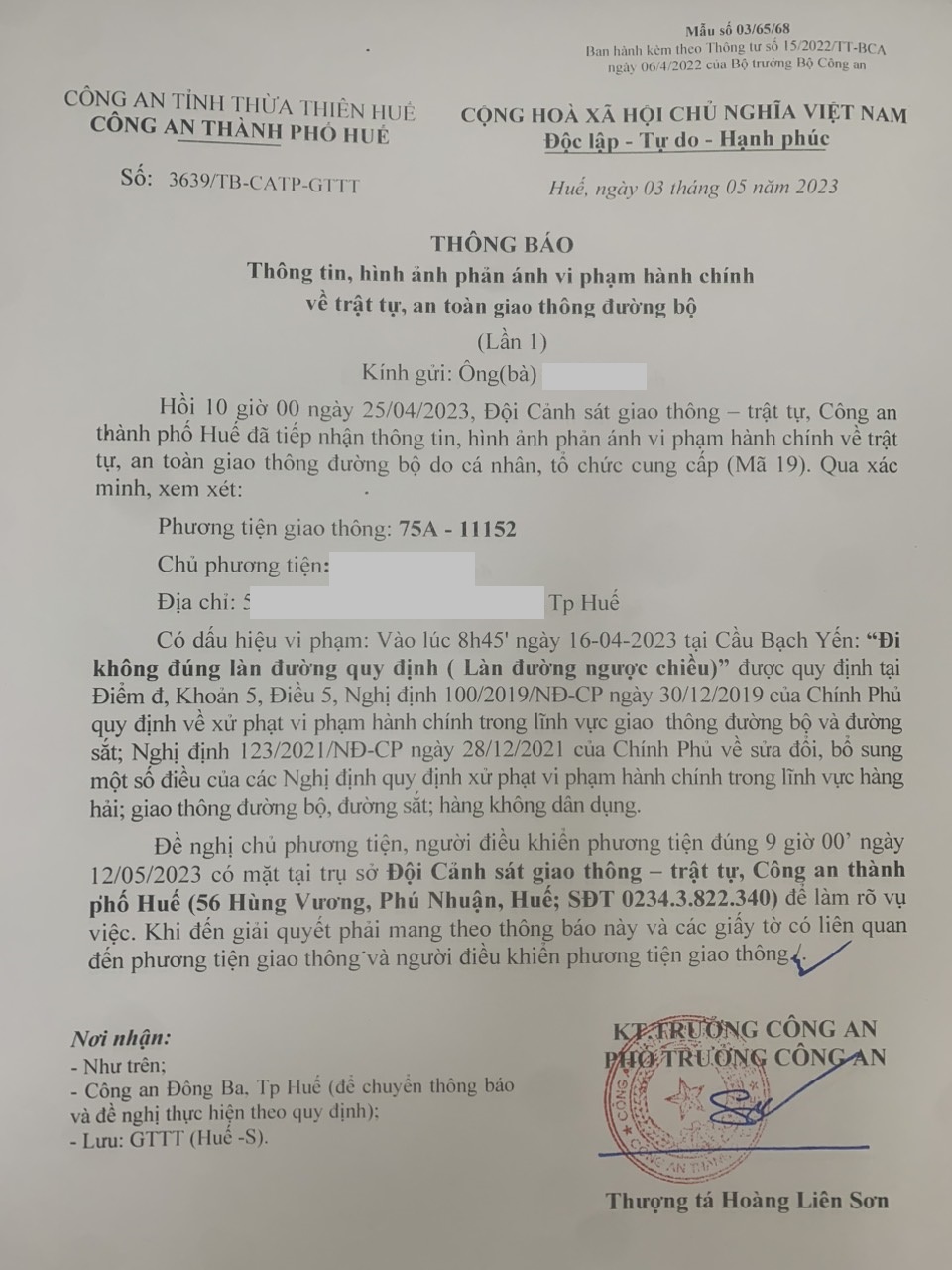 Công an thành phố cập nhật kết quả: Qua xác minh làm việc với chủ phương tiện vi phạm lỗi: Không chấp hành hiệu lệnh, chỉ dẫn của vạch kẻ đường, quy định tại điểm a, khoản 1, điều 5 Nghị định 100/2019/NĐ-CP được sửa đổi, bổ sung tại Nghị định 123/NĐ-CP ngày 28/12/2021. Ra Quyết định xử phạt 350.000đ. (Đính kèm Quyết định)