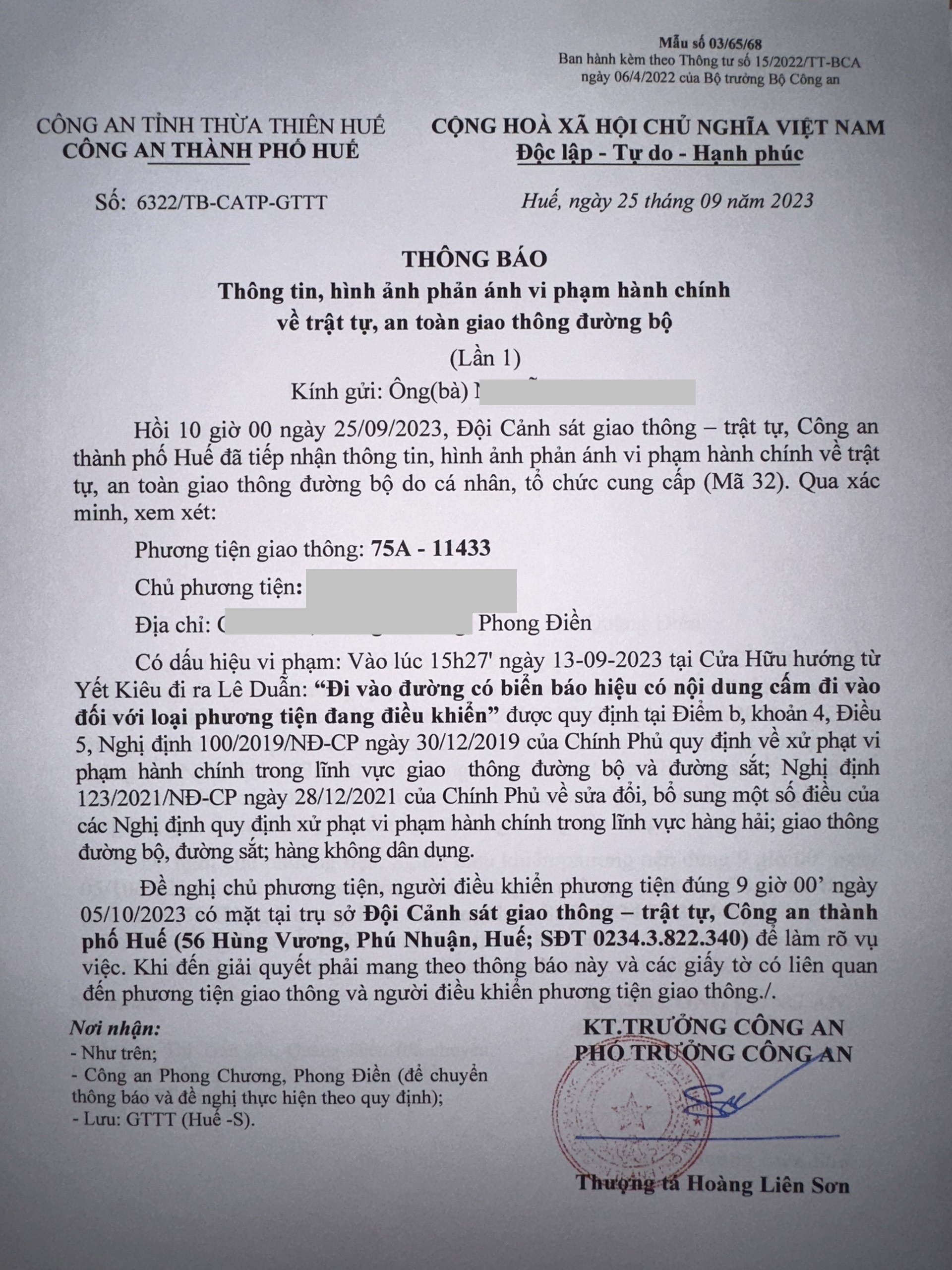 Vấn đề quý Ông/Bà phản ánh, Công an tỉnh đã chỉ đạo Công an thành phố Huế kiểm tra và xin thông báo kết quả xử lý như sau:
