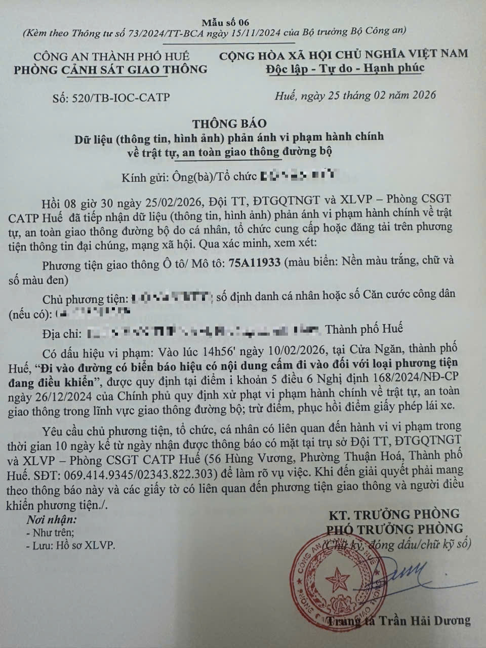 Vấn đề quý Ông/Bà phản ánh, Phòng Cảnh sát giao thông – Công an thành phố Huế đã kiểm tra và xin thông báo kết quả như sau: