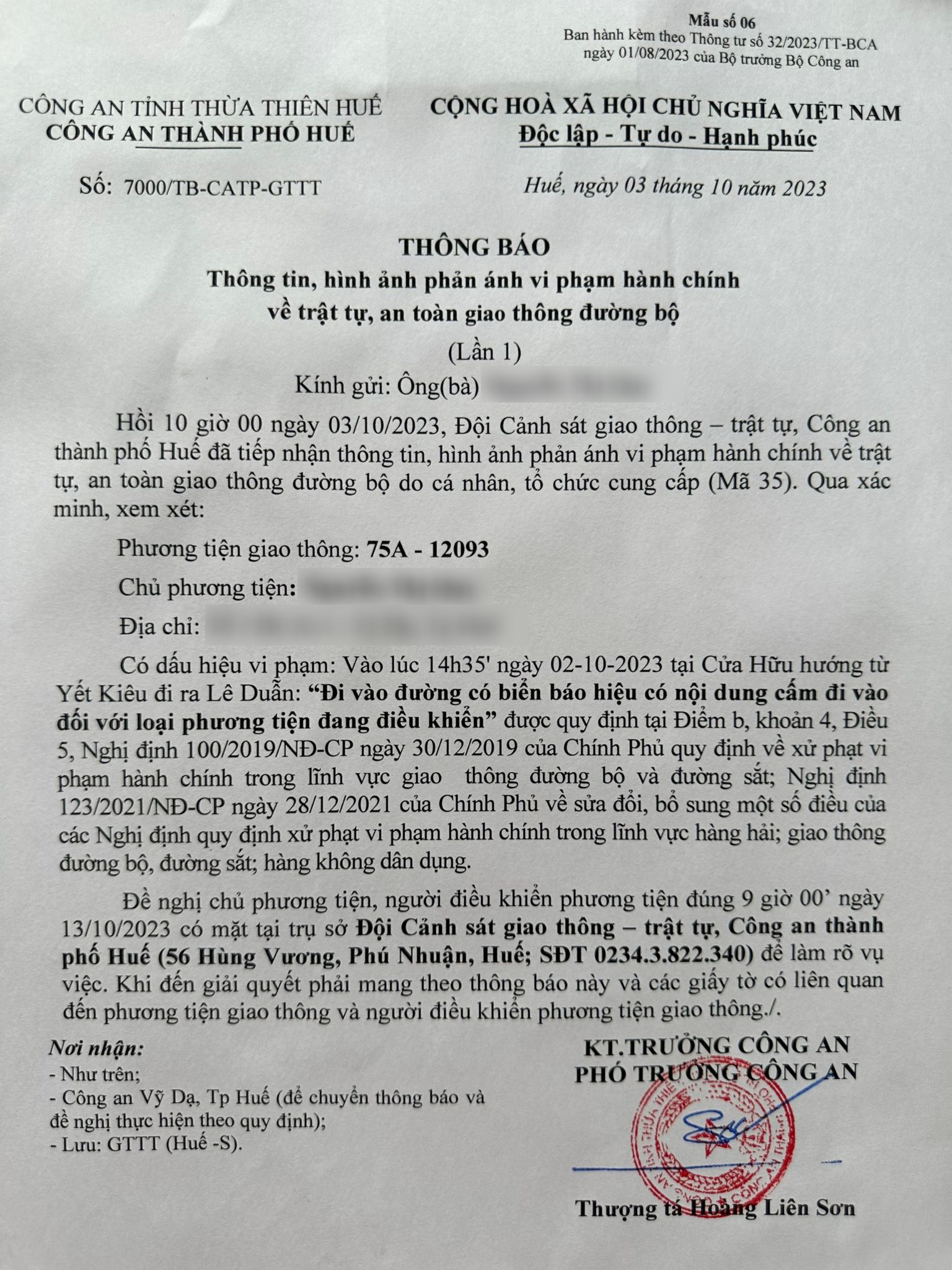Vấn đề quý Ông/Bà phản ánh, Công an tỉnh đã chỉ đạo Công an thành phố Huế kiểm tra và xin thông báo kết quả như sau: