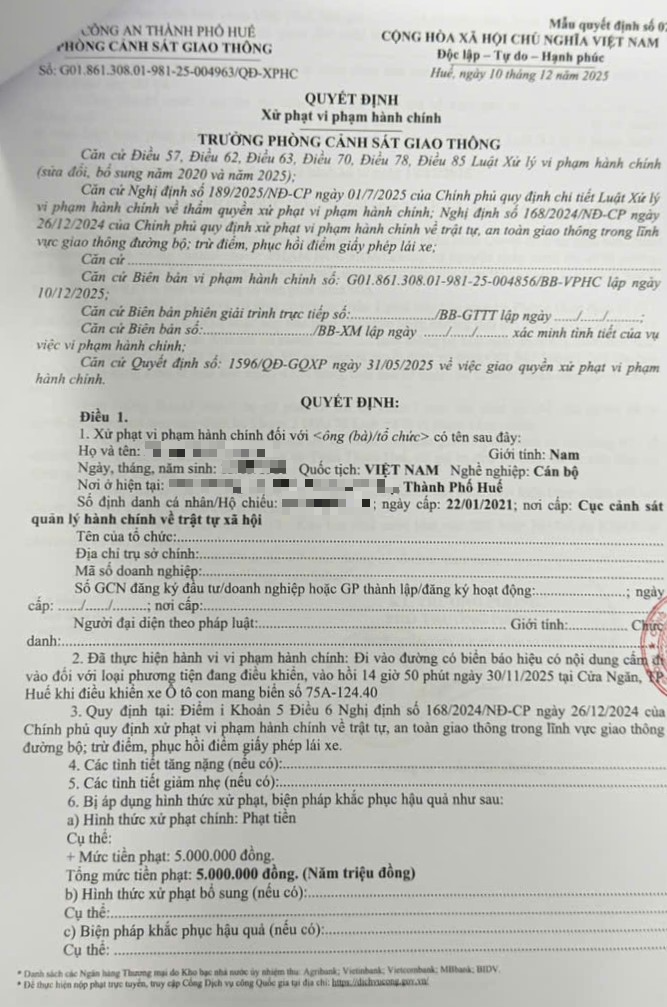 Phòng Cảnh sát giao thông cập nhật Quyết định xử phạt (Đính kèm QĐ).