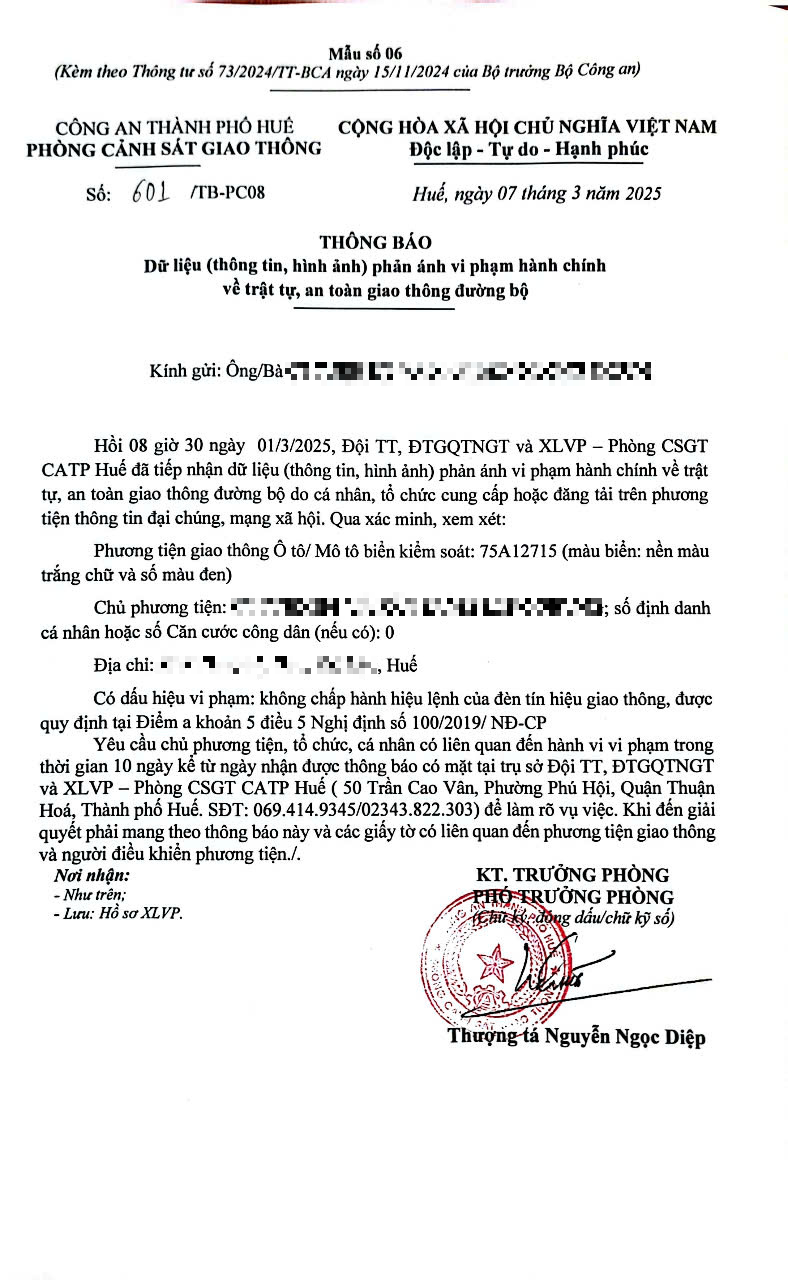 Vấn đề quý Ông/Bà phản ánh, Phòng Cảnh sát giao thông – Công an thành phố Huế đã kiểm tra và xin thông báo kết quả như sau:
