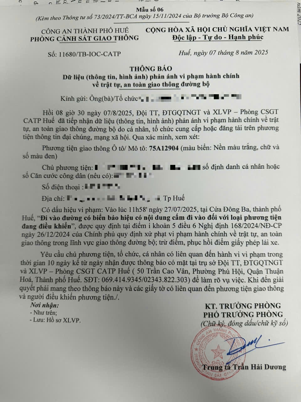Vấn đề quý Ông/Bà phản ánh, Phòng Cảnh sát giao thông – Công an thành phố Huế đã kiểm tra và xin thông báo kết quả như sau: