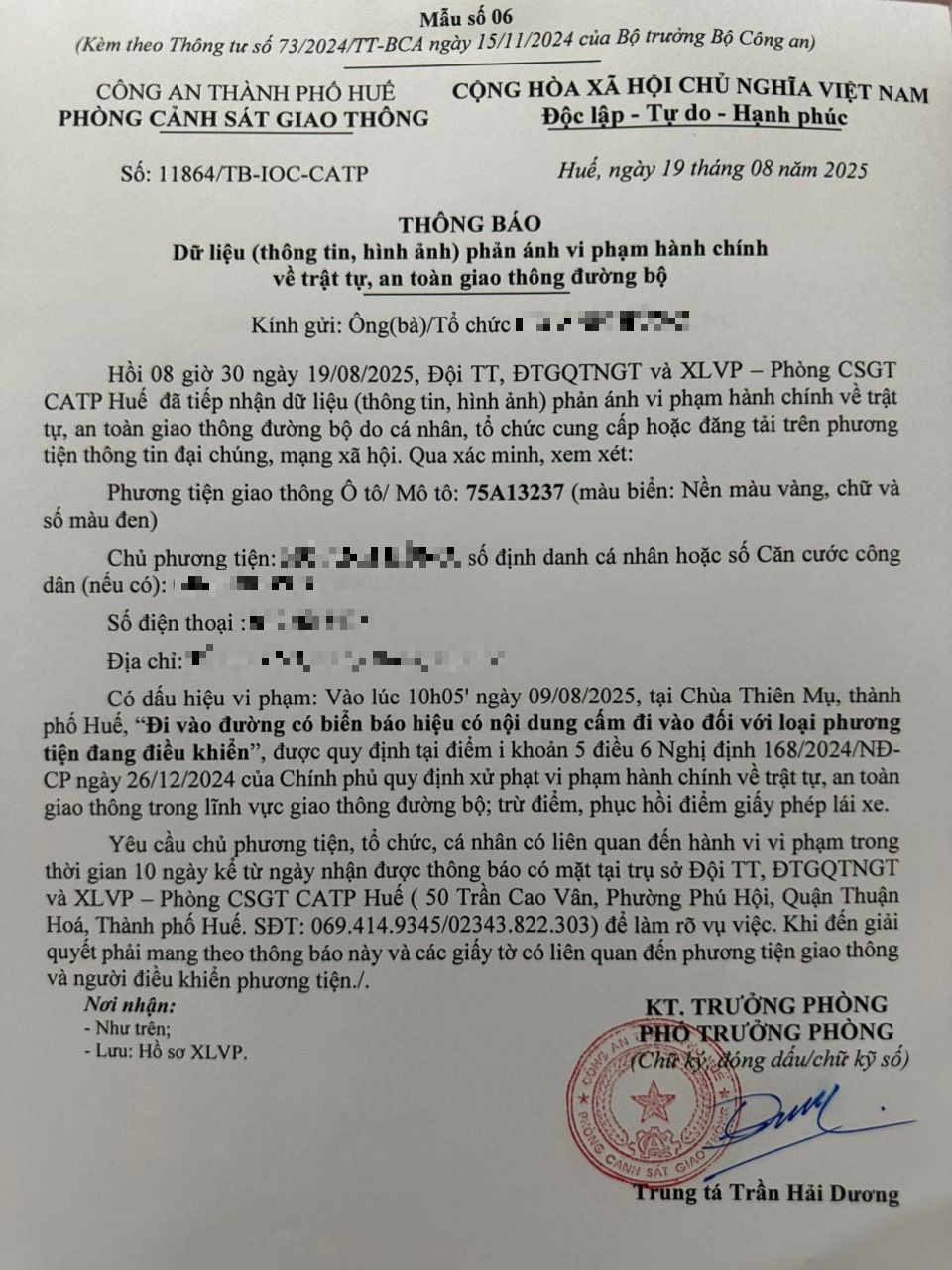 Vấn đề quý Ông/Bà phản ánh, Phòng Cảnh sát giao thông – Công an thành phố Huế đã kiểm tra và xin thông báo kết quả như sau: