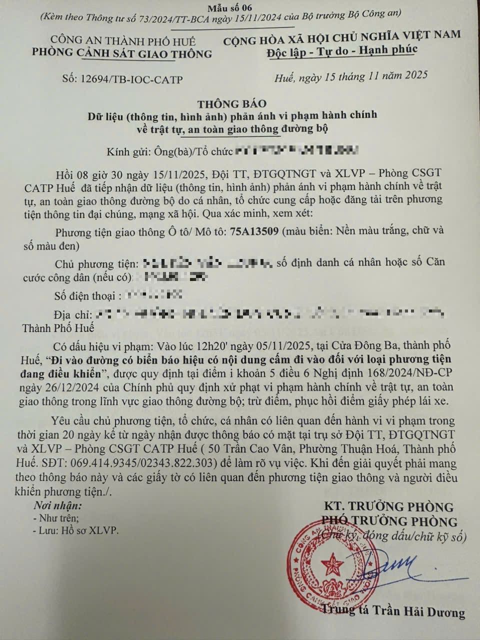Vấn đề quý Ông/Bà phản ánh, Phòng Cảnh sát giao thông – Công an thành phố Huế đã kiểm tra và xin thông báo kết quả như sau: