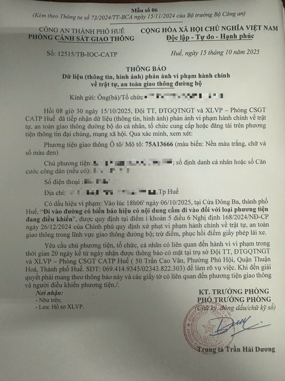 Vấn đề quý Ông/Bà phản ánh, Phòng Cảnh sát giao thông – Công an thành phố Huế đã kiểm tra và xin thông báo kết quả như sau: