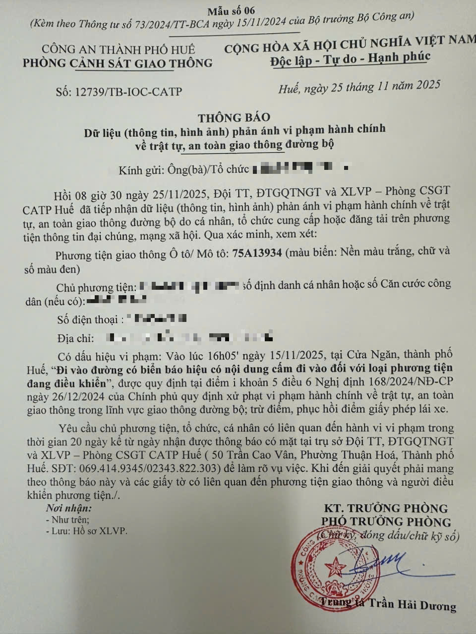Vấn đề quý Ông/Bà phản ánh, Phòng Cảnh sát giao thông – Công an thành phố Huế đã kiểm tra và xin thông báo kết quả như sau: