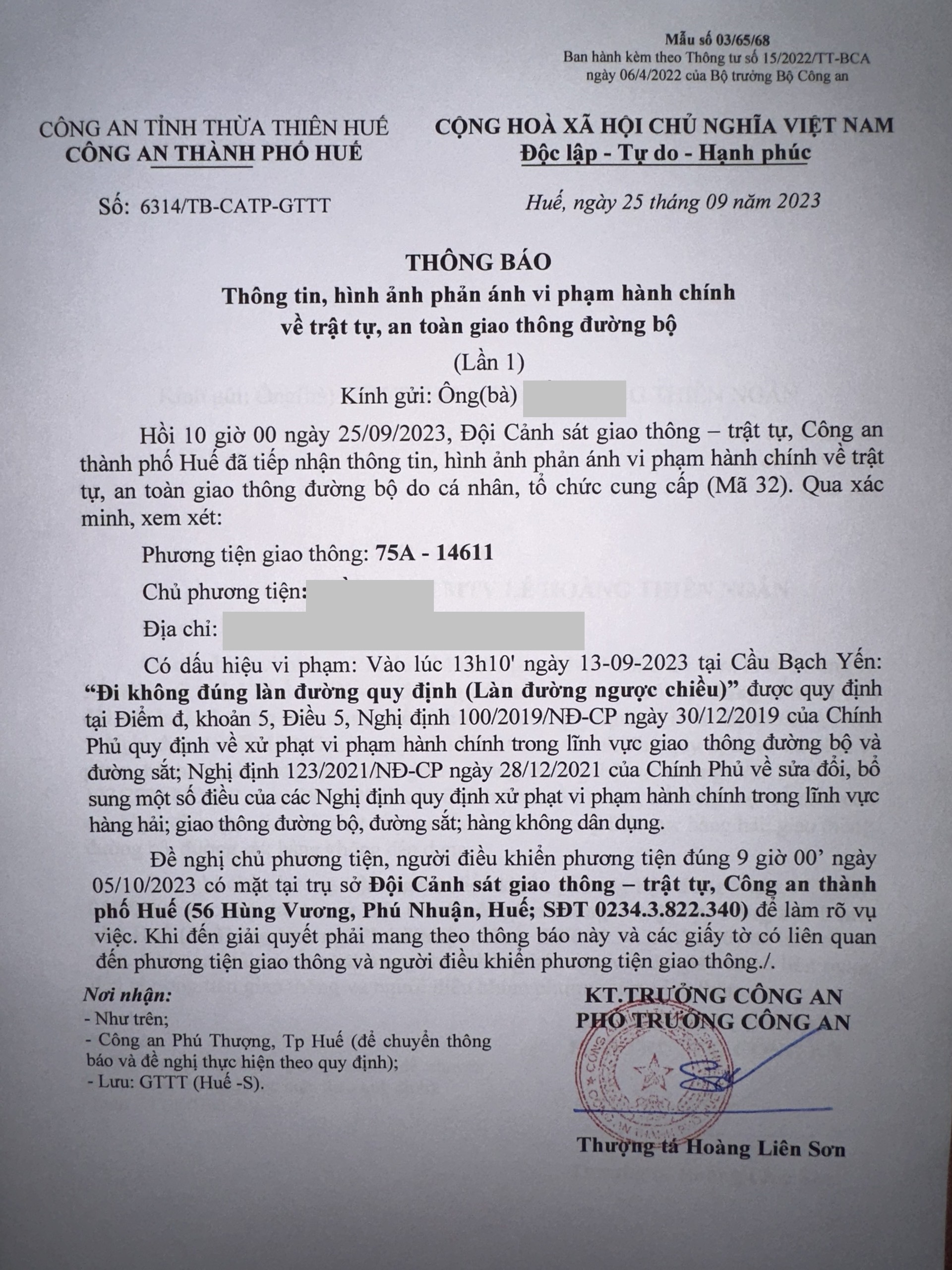 Vấn đề quý Ông/Bà phản ánh, Công an tỉnh đã chỉ đạo Công an thành phố Huế kiểm tra và xin thông báo kết quả như sau: