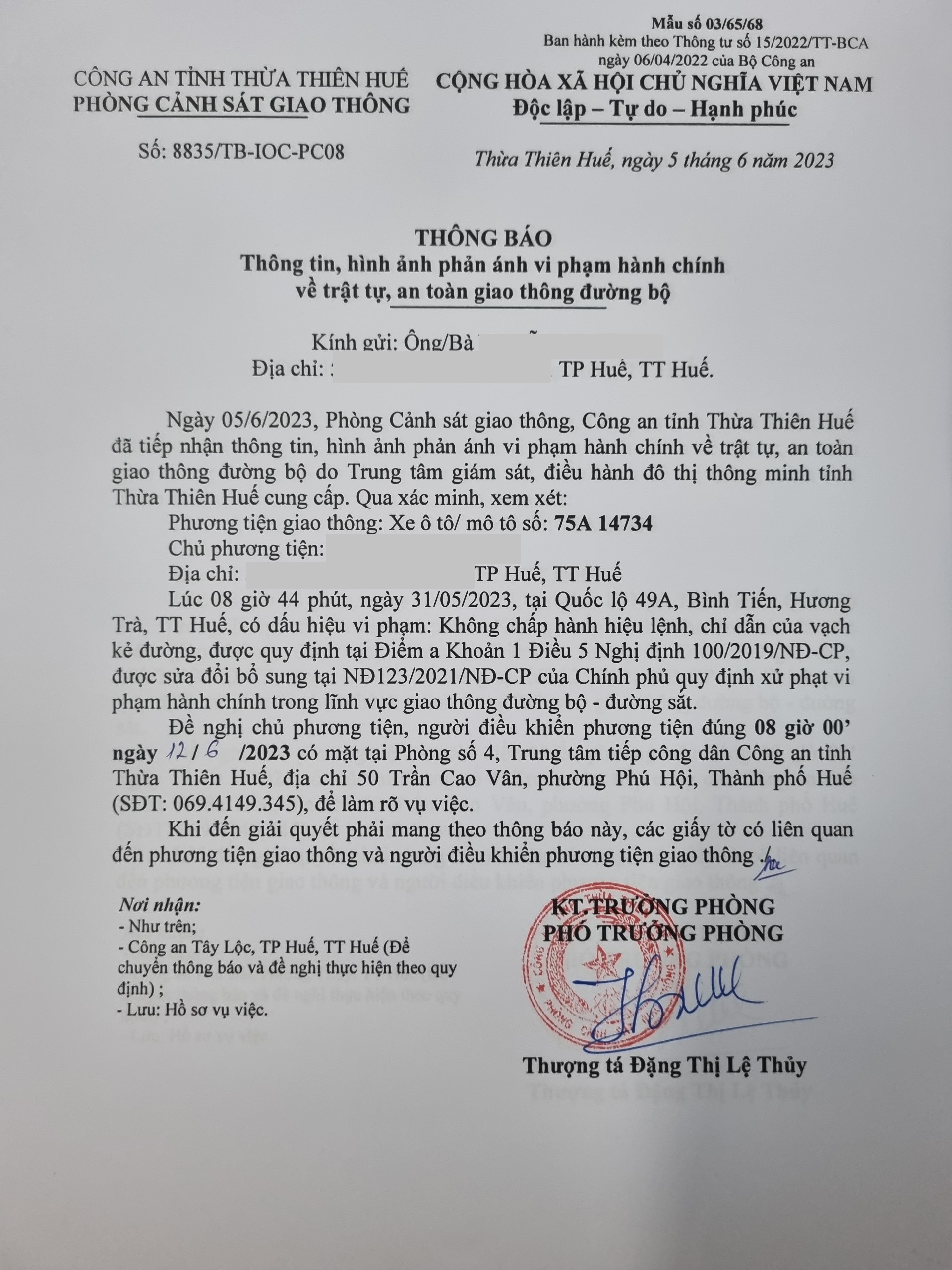 Phòng Cảnh sát giao thông cập nhật Quyết định xử phạt (Đính kèm QĐ).