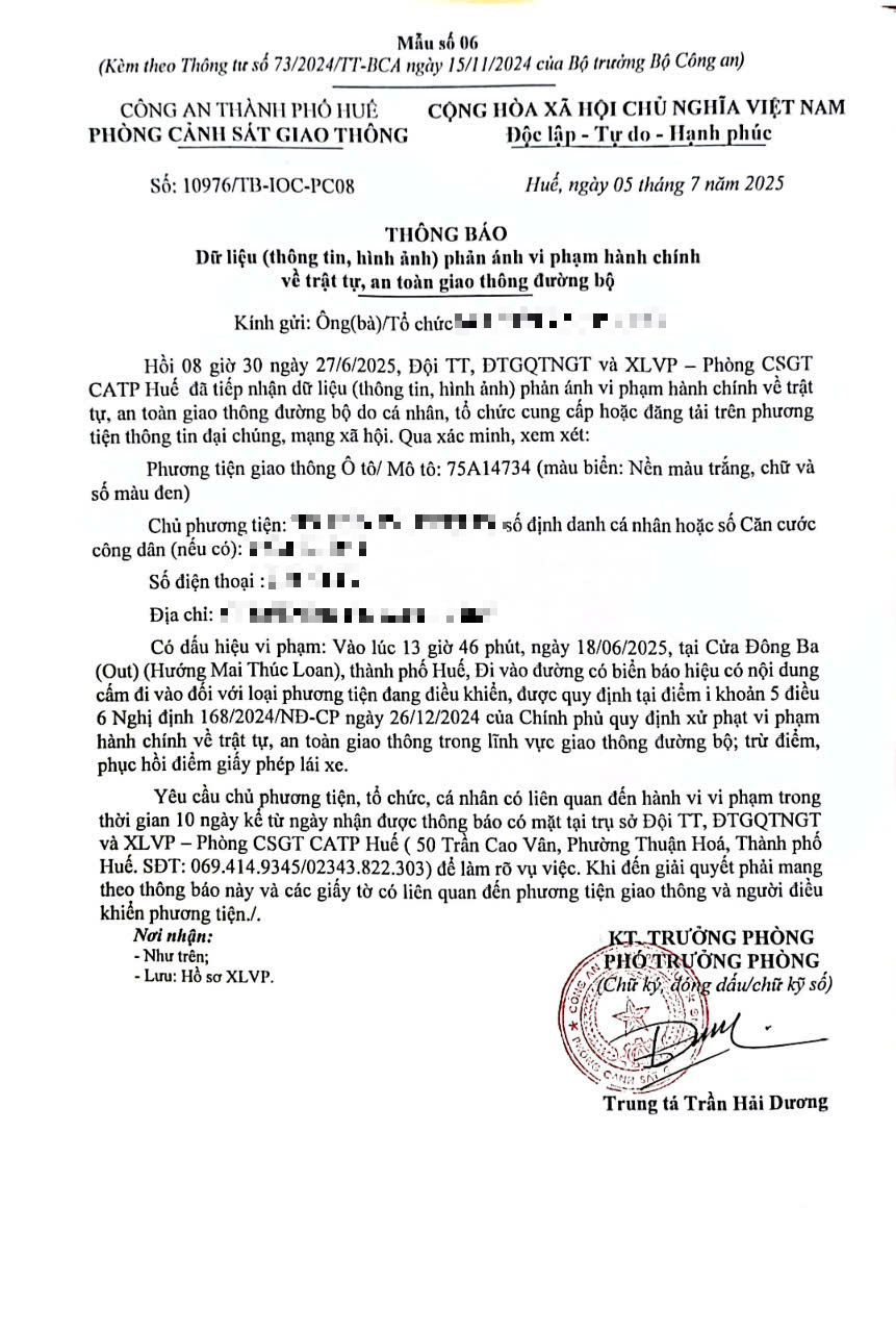 Vấn đề quý Ông/Bà phản ánh, Phòng Cảnh sát giao thông – Công an thành phố Huế đã kiểm tra và xin thông báo kết quả như sau: