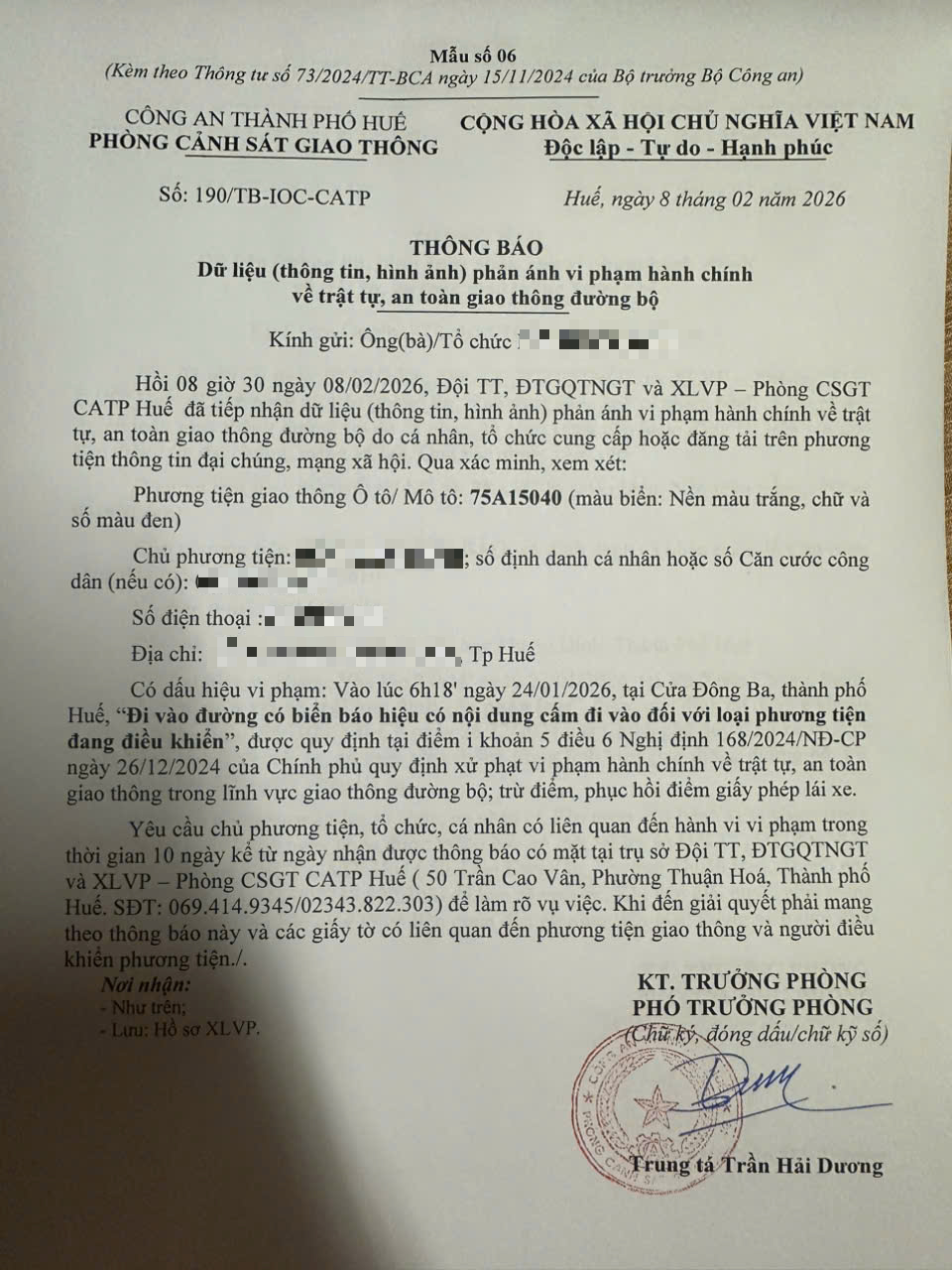 Vấn đề quý Ông/Bà phản ánh, Phòng Cảnh sát giao thông – Công an thành phố Huế đã kiểm tra và xin thông báo kết quả như sau: