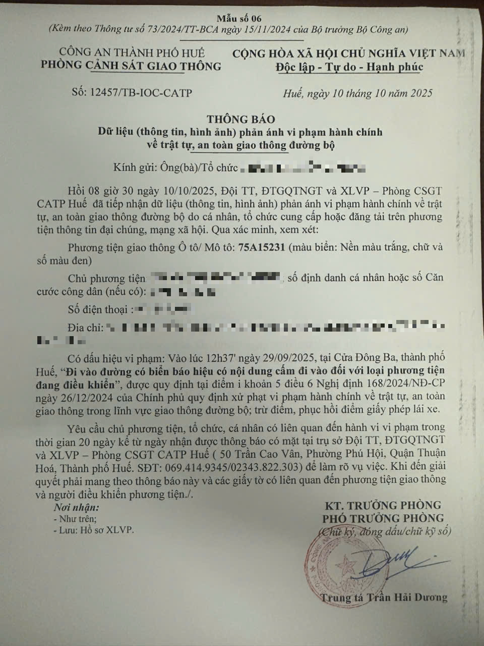 Vấn đề quý Ông/Bà phản ánh, Phòng Cảnh sát giao thông – Công an thành phố Huế đã kiểm tra và xin thông báo kết quả như sau: