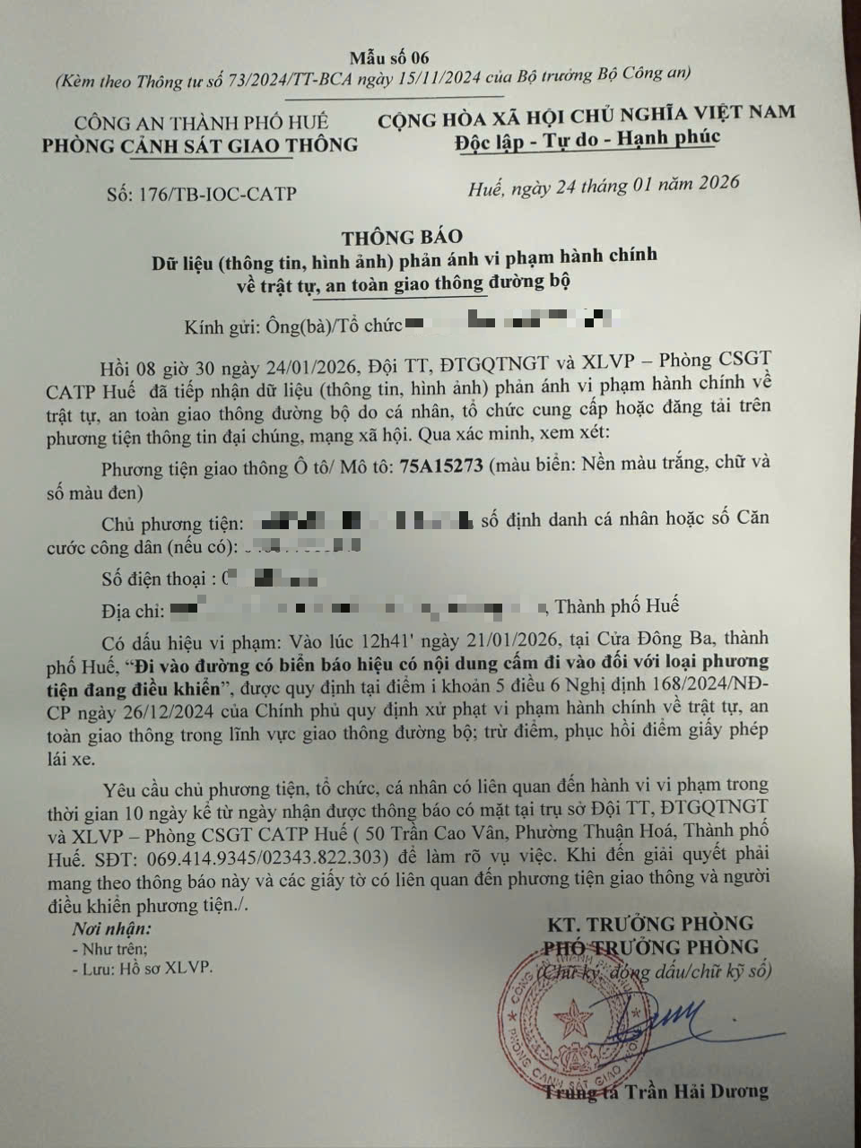 Vấn đề quý Ông/Bà phản ánh, Phòng Cảnh sát giao thông – Công an thành phố Huế đã kiểm tra và xin thông báo kết quả như sau: