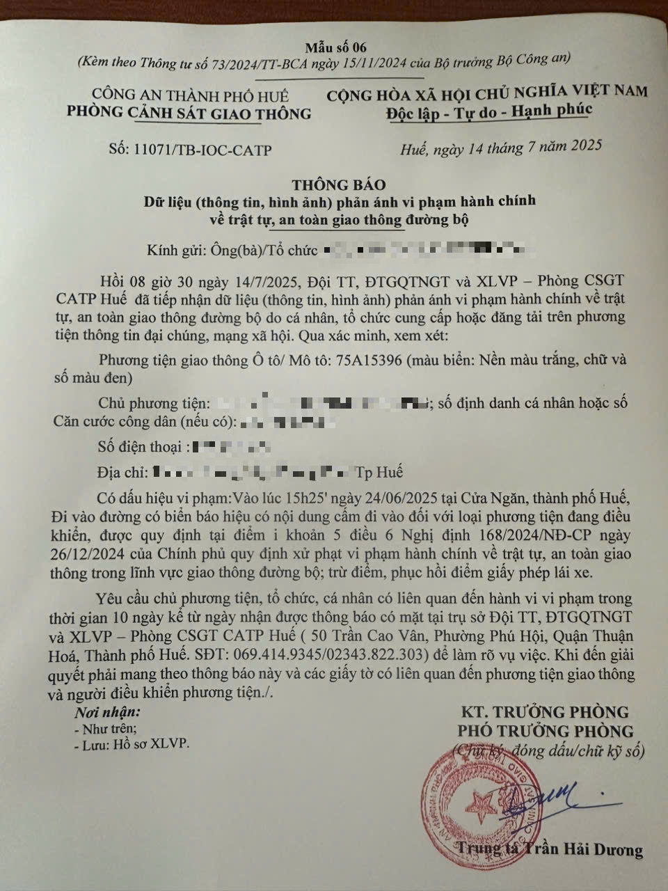 Vấn đề quý Ông/Bà phản ánh, Phòng Cảnh sát giao thông – Công an thành phố Huế đã kiểm tra và xin thông báo kết quả như sau: