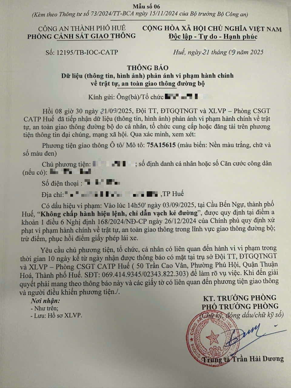 Vấn đề quý Ông/Bà phản ánh, Phòng Cảnh sát giao thông – Công an thành phố Huế đã kiểm tra và xin thông báo kết quả như sau:
