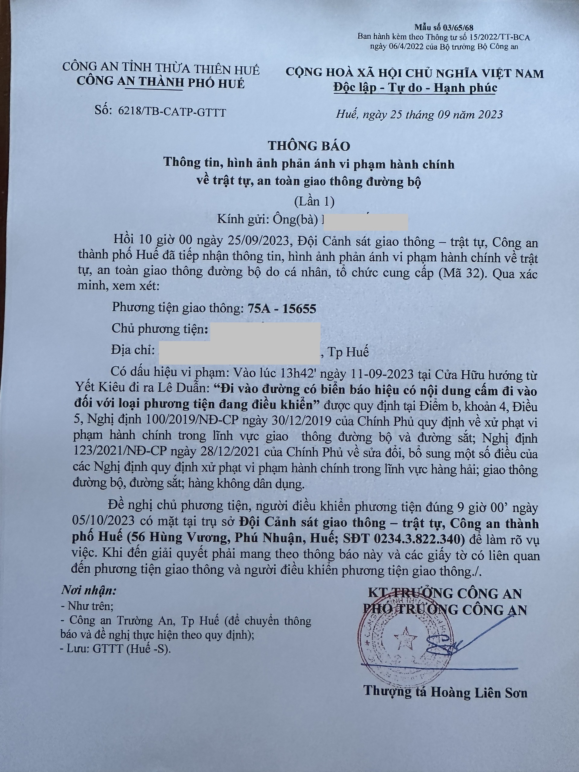 Vấn đề quý Ông/Bà phản ánh, Công an tỉnh đã chỉ đạo Công an thành phố Huế xác minh và xin thông báo kết quả như sau: