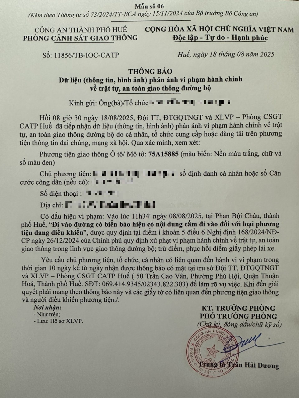 Vấn đề quý Ông/Bà phản ánh, Phòng Cảnh sát giao thông – Công an thành phố Huế đã kiểm tra và xin thông báo kết quả như sau: