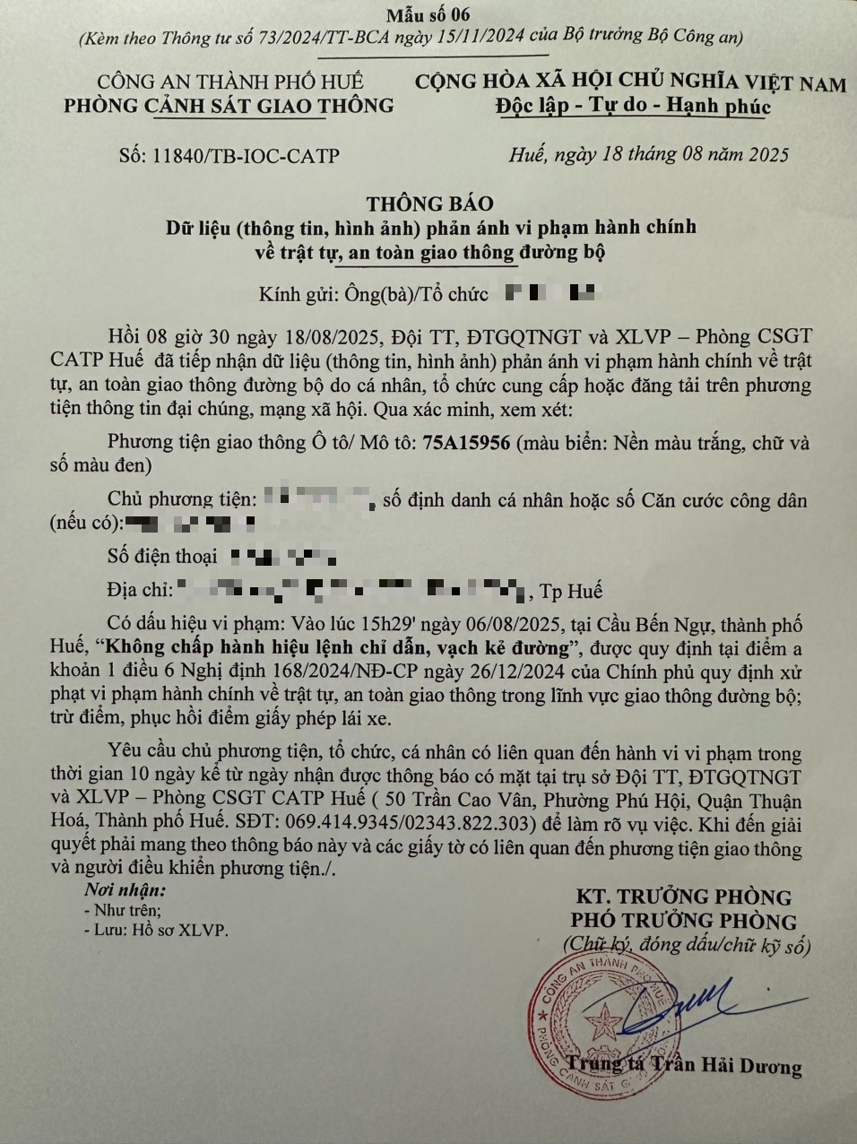 Vấn đề quý Ông/Bà phản ánh, Phòng Cảnh sát giao thông – Công an thành phố Huế đã kiểm tra và xin thông báo kết quả như sau: