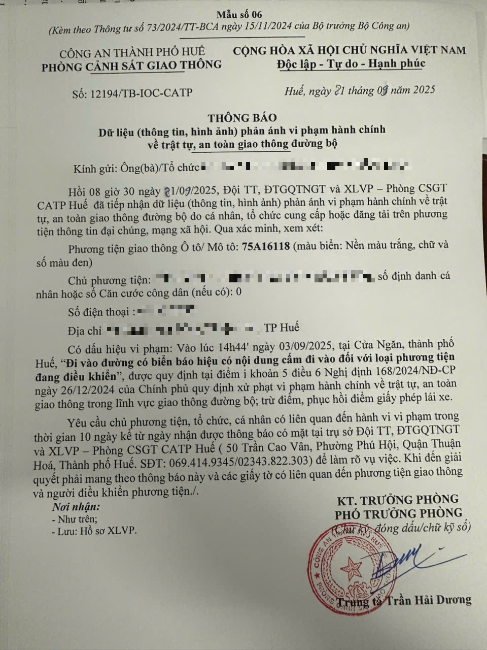 Vấn đề quý Ông/Bà phản ánh, Phòng Cảnh sát giao thông – Công an thành phố Huế đã kiểm tra và xin thông báo kết quả như sau:
