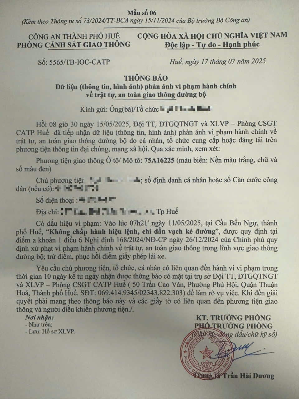 Vấn đề quý Ông/Bà phản ánh, Phòng Cảnh sát giao thông – Công an thành phố Huế đã kiểm tra và xin thông báo kết quả như sau:
