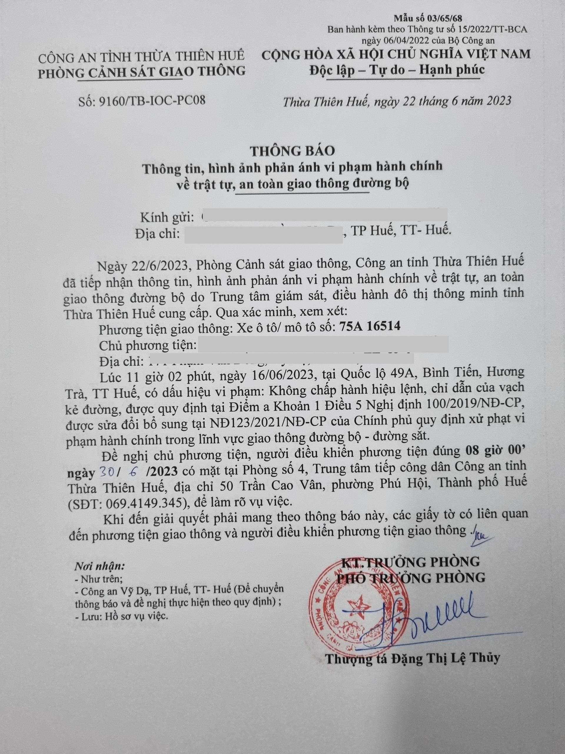 Phòng Cảnh sát giao thông đã gửi thông báo yêu cầu chủ phương tiện đến làm việc theo quy định của pháp luật. Tuy nhiên, đến nay, chủ phương tiện vẫn chưa đến làm việc theo ngày hẹn như yêu cầu. Phòng Cảnh sát giao thông sẽ tiến hành gửi thông báo cho cơ quan đăng kiểm để đưa vào cảnh báo trên Chương trình Quản lý kiểm định.