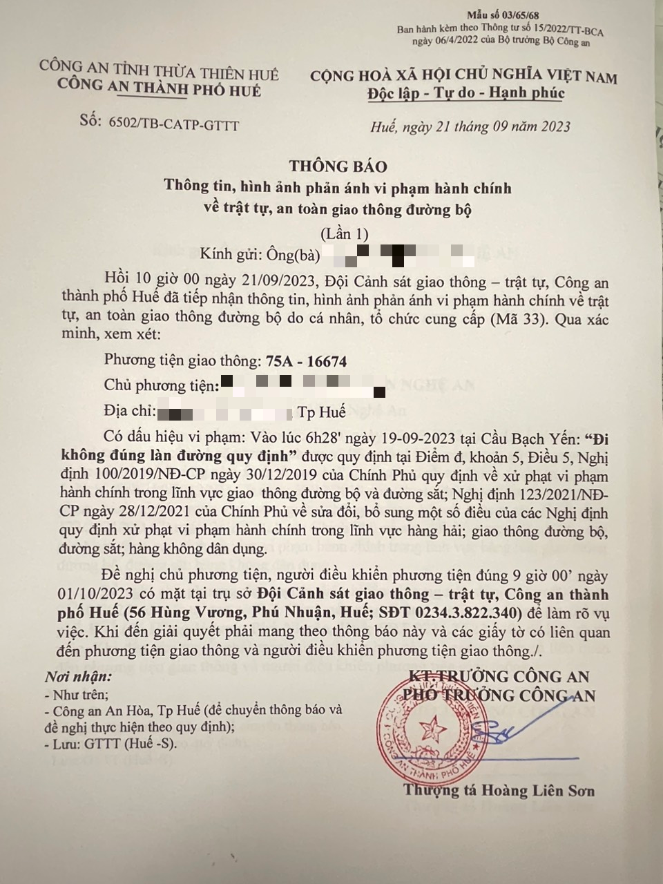 Công an thành phố cập nhật kết quả: Qua xác minh làm việc với chủ phương tiện vi phạm lỗi: Không chấp hành hiệu lệnh, chỉ dẫn của vạch kẻ đường, quy định tại điểm a, khoản 1, điều 5 Nghị định 100/2019/NĐ-CP được sửa đổi, bổ sung tại Nghị định 123/NĐ-CP ngày 28/12/2021. Ra Quyết định xử phạt 350.000đ. (Đính kèm Quyết định)