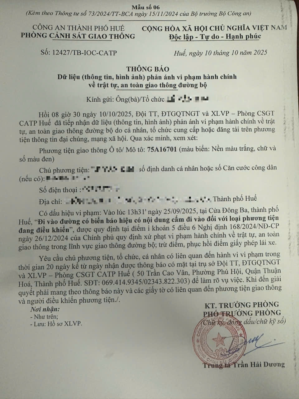 Vấn đề quý Ông/Bà phản ánh, Phòng Cảnh sát giao thông – Công an thành phố Huế đã kiểm tra và xin thông báo kết quả như sau: